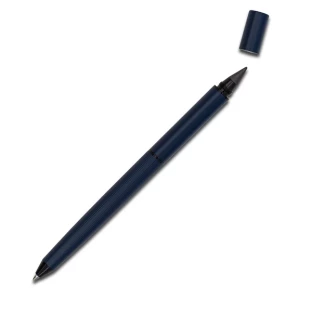 Długopis oraz wieczny ołówek w jednym. Wkład ołówka wykonany jest ze stopu metali, który pozostawia ślad na papierze. Długość pisania odpowiada 100 zwykłym ołówkom. Pakowany w prezentowym pudełku.