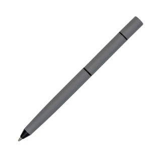 Długopis oraz wieczny ołówek w jednym. Wkład ołówka wykonany jest ze stopu metali, który pozostawia ślad na papierze. Długość pisania odpowiada 100 zwykłym ołówkom. Pakowany w prezentowym pudełku.