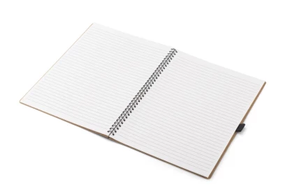 Klasyczny notes na spirali w papierowej, brązowej okładce wraz z miejscem na długopis. Kartki w notesie wykonane są z papieru kamiennego. Papier ten jest wyjątkowo wytrzymały i odporny na wilgoć. Kartki w linie.