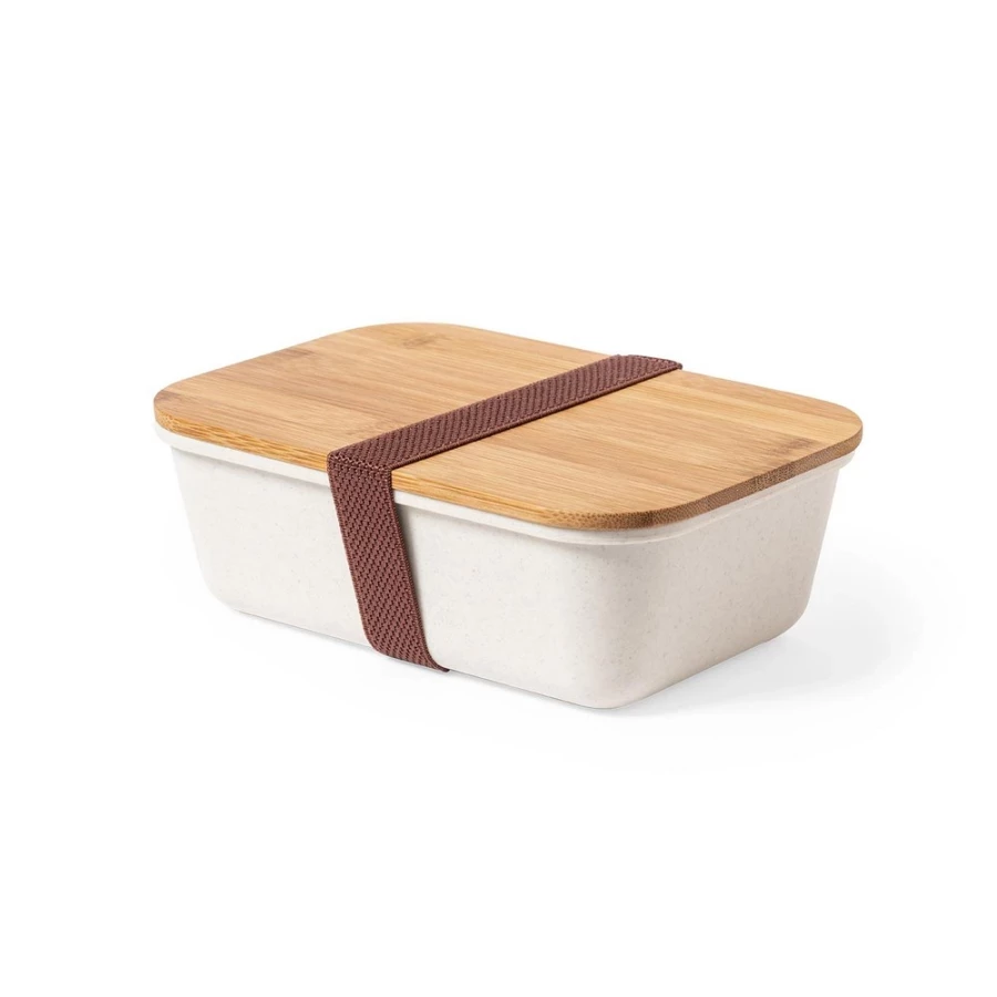 Pudełko śniadaniowe 1 L z bambusowym wieczkiem, połączone paskiem