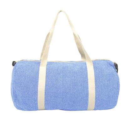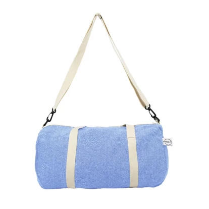 Torba sportowa, podróżna wykonana z bawełny z recyklingu i poliestru z recyklingu, posiada certyfikat GRS (Global RecycIed Standard), duża przegroda główna na zamek błyskawiczny, uchwyty i regulowany pasek na ramię